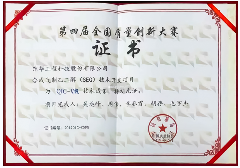 名稱:第四屆全國質量創新大賽QIC-V級技術成果獎