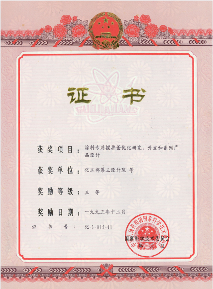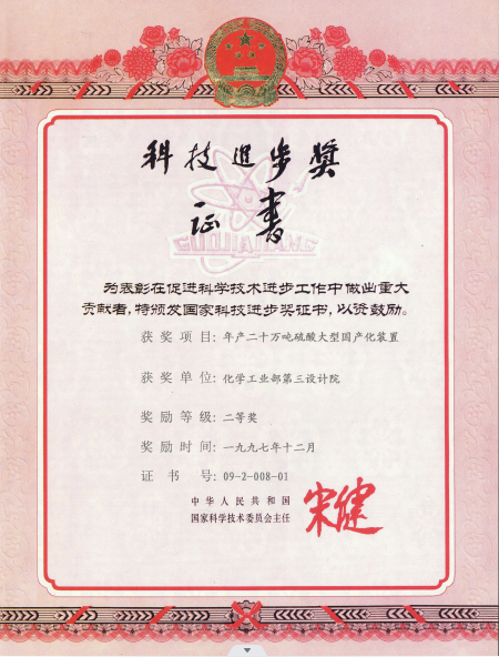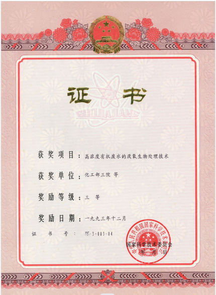 名稱:國家科技進步獎三等獎