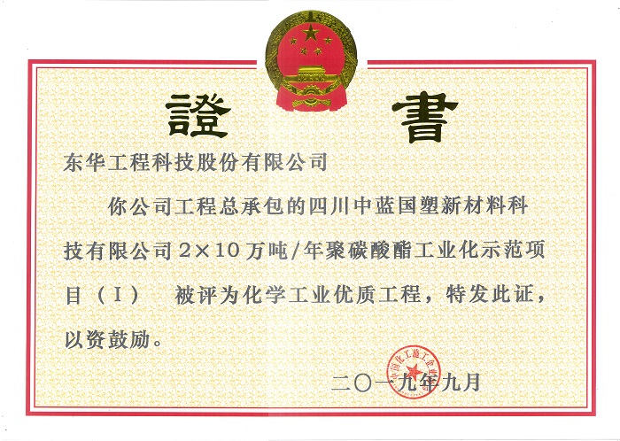 項目:四川中藍國塑新材料科技有限公司2×10萬噸年聚碳酸酯工業化示范項目(Ⅰ)