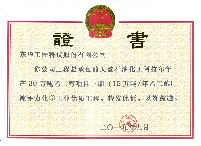 項目:天盈石油化工阿拉爾年產30萬噸乙二醇項目一期(15萬噸每年乙二醇)