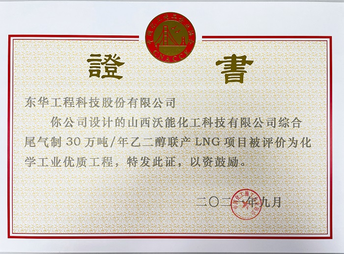 項目:山西沃能化工科技有限公司綜合尾氣制30萬噸每年乙二醇聯產LNG項目
