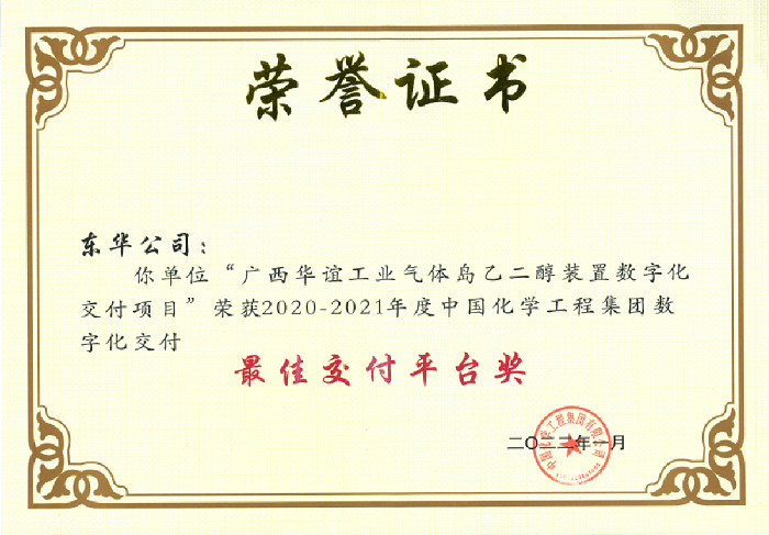 名稱:中國化學最佳交付平臺獎