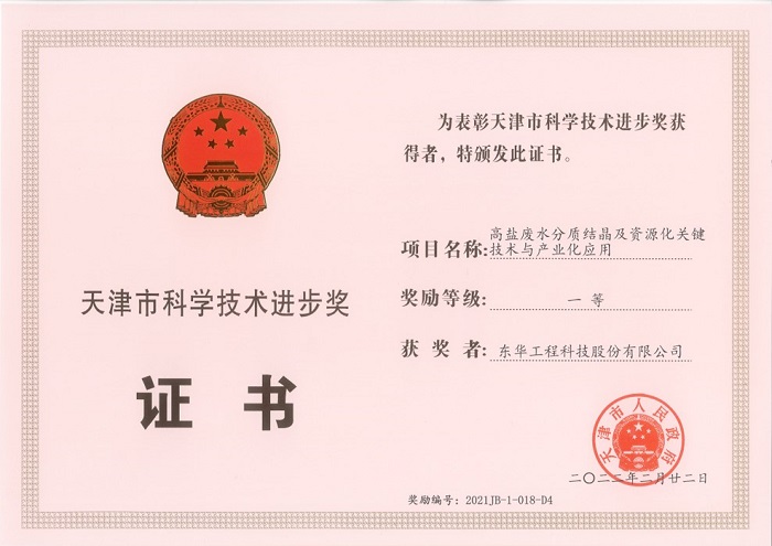 名稱:天津市科學技術進步一等獎