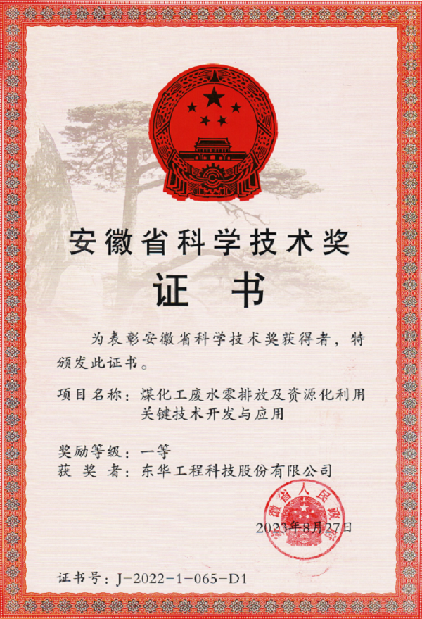 名稱:安徽省科技進步一等獎